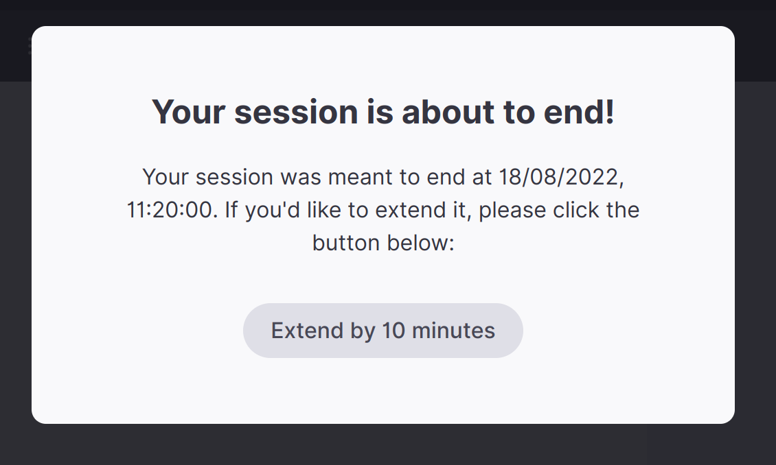It is possible to create a "soft" limit on the end of a session and prompt leaders to act accordingly. The leader will have the option to extend the session by 10 minutes. At the end of these 10 minutes, the leader will be prompted again.